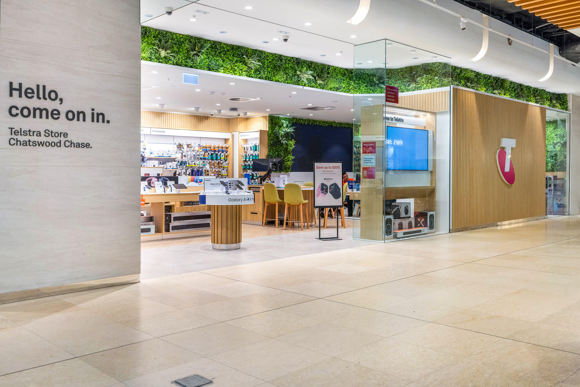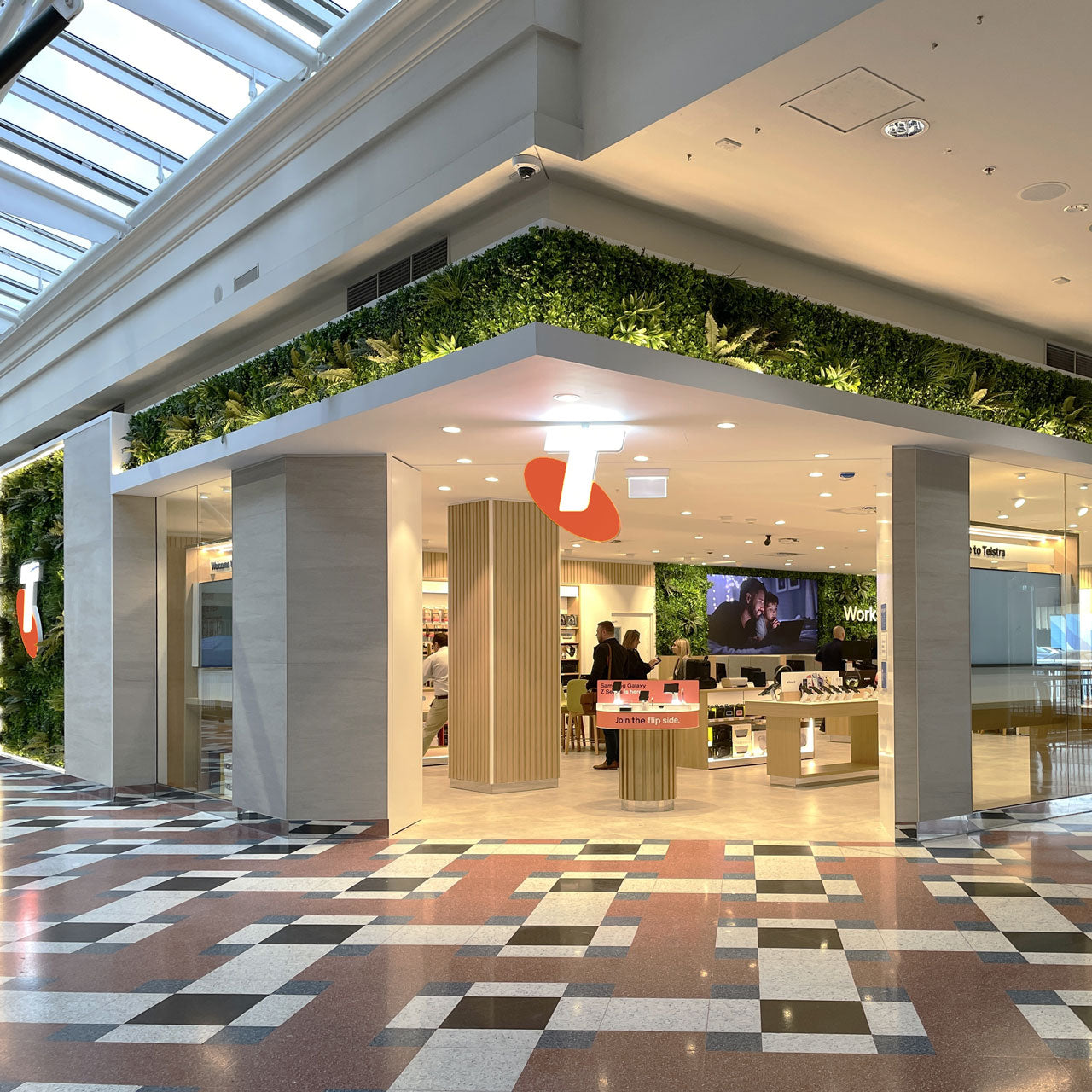 Australia's leading telecommunications company, Telstra, chose to partner with Evergreen Walls on their national rollout of artificial greenery across retail stores.