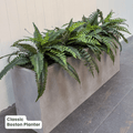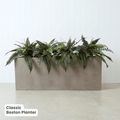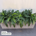 Classic Boston: Features five dense, arching artificial Boston Ferns that create a soft, overflowing canopy. Ideal for adding texture to minimalist commercial spaces.