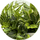 Signature Areca Bundle: A dense, tropical artificial plant arrangement featuring the lush fronds of Areca Palm bushes layered with Philodendron, Hosta, and Burgundy Calathea. Ideal for creating a rich, multi-tonal green display with a premium botanical feel.