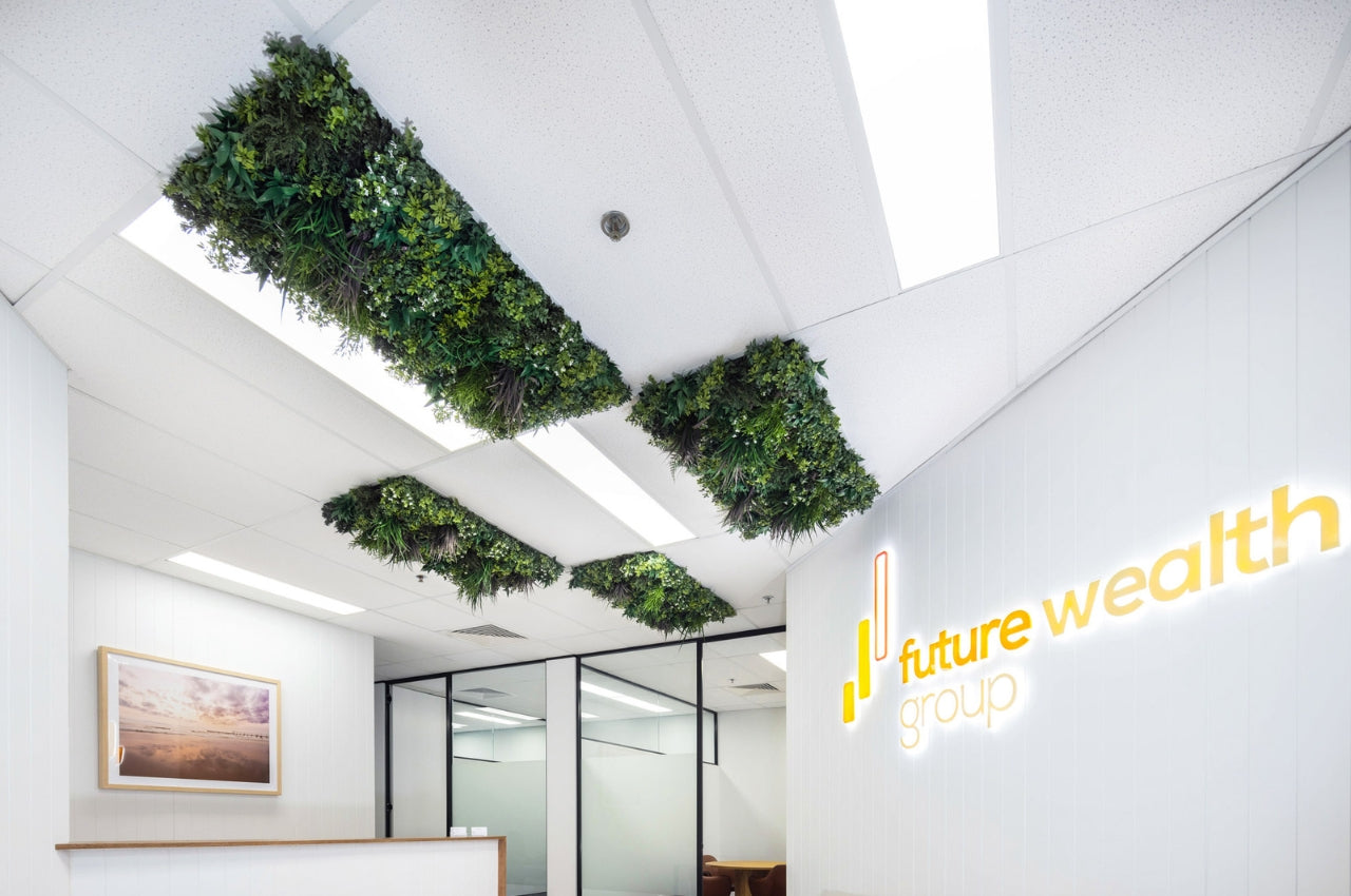Tailor-made for suspended office ceiling systems, these ceiling greenery panels fit seamlessly into any standard office suspended ceiling system. Simply replace your existing tiles with the Evergreen Premium Ceiling Panel and watch your workspace transform into a sophisticated, modern environment that impresses both employees and visitors alike.