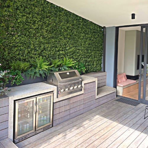For homeowners looking to add some greenery to their living spaces, our faux wall garden options offer a stylish and low-maintenance solution for your residential projects. Options like artificial ivy are also available for those seeking a classic, timeless look in their residential setting. Whether itβs for a private garden retreat, a feature wall in the living room, or a lush backdrop for an outdoor dining area, we provide creative and versatile solutions thatβll enhance your home beautifully. Our team is dedicated to helping you achieve a personalised look that brings a sense of nature and tranquillity right into your residence.